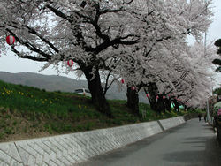 私の住んでいる近所の河川敷です、黄色く見えるのは一面の水仙の花です