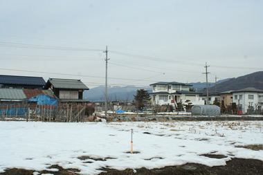 ■この辺は区画整理が終わったところできれいな道路が開いています、ところどころにリンゴ園が見えます。