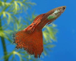 上の画像の個体をご覧ください、ネオンテトラグッピーとして親しまれている品種です、最近の個体は結構きれいなダブルソードを表現しています。
