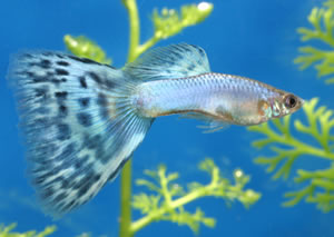 何故か大型になるタイプは、尾びれのモザイク柄の黒の表現がブルーに沈んで見えるようになります