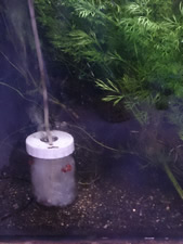 こうした方法ですと草体の根は水槽内に下りているので水をあげる必要が無く上部は空気の流動があり生育に支障はありません、一つの手法ではあります。