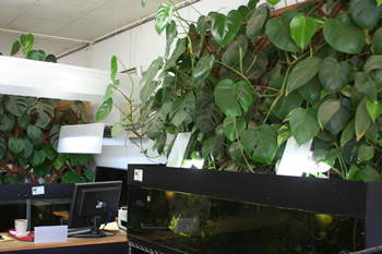 ■水槽上部はモンステラとヤマサキカズラです、鉢には植わっておらず根はすべて水槽に下りています。