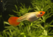 仔には目立つほどではないですが、腰の部分に赤が現れるものが混ざります。 活発に繁殖し大変に美しいブルーの個体を楽しめます、尾びれは付いてきません。 |